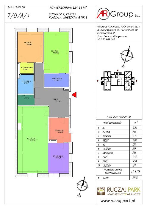 Mieszkanie o łącznej powierzchni 124,38m2 składa się z: