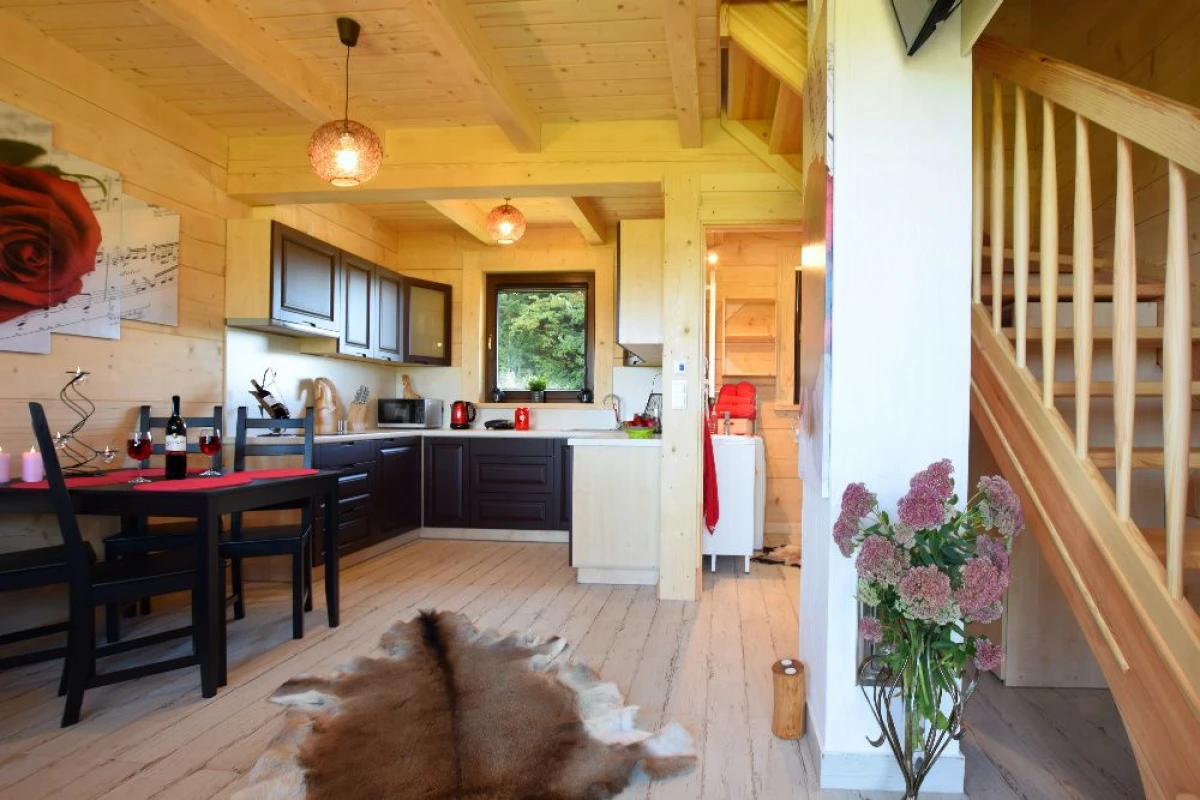 – Całe drewniane z tzw. płazów, dwupoziomowe, 4-7 osobowe, z tarasem.