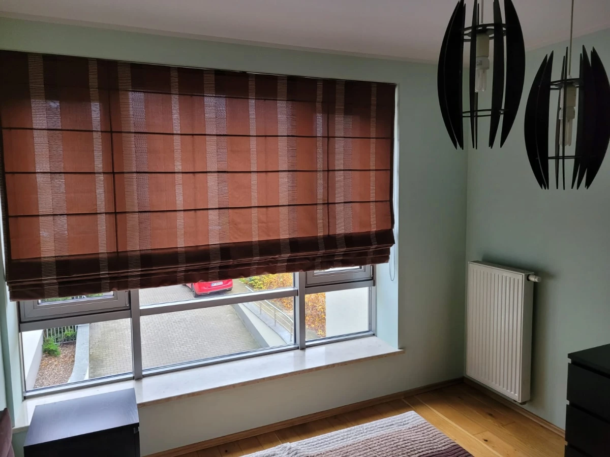 - Przestronny balkon z drewnianymi żaluzjami gwarantującymi intymność