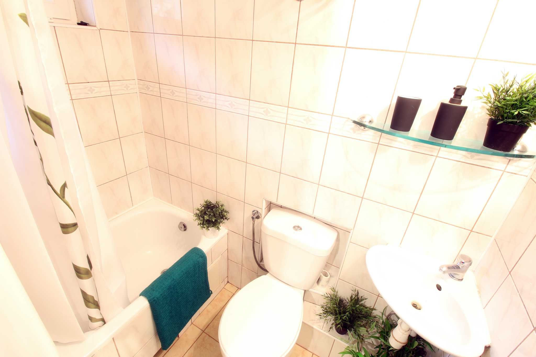 Salon z aneksem kuchennym wyposażony w rozkładaną kanapę, szafę z suwanymi drzwiami, stół z krzesłami, szafkę wiszącą. Sypialnia wyposażona w łóżko i 2 komody. Aneks kuchenny wyposażony w lodówkę, piekarnik, płytę elektryczną, zlewozmywak, pralkę. Łazienka z wanną z której można korzystać jak z prysznica, toaleta, lustro, półeczka, boiler.