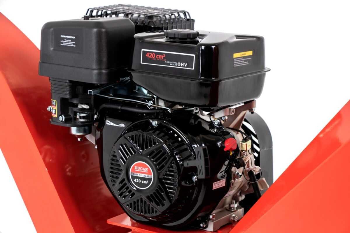Nasz rozdrabniacz jest wyposażony w silnik marki Ducar o pojemności 420 cm3 i mocy znamionowej 9 kW, co gwarantuje nie tylko szybką i skuteczną pracę, ale również długą żywotność urządzenia. Dzięki temu możesz mieć pewność, że Twój rozdrabniacz posłuży Ci przez wiele lat. Maksymalna średnica gałęzi do 12 cm to dla naszego rozdrabniacza żaden problem. Bębnowy mechanizm tnący bębnowy oraz górny wyrzut trocin zapewniają, że pozostałości z gałęzi zostaną dokładnie rozdrobnione i bezpiecznie usunięte. Dzięki temu możesz bezproblemowo pozbyć się odpadów ogrodowych, a przy okazji wykorzystać je do nawożenia roślin w swoim ogrodzie.