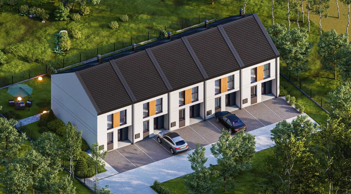 Zabudowa szeregowa domów jednorodzinnych to połączenie tego co najlepsze w domu z tym co najważniejsze w mieszkaniu. Zyskujesz większą przestrzeń mieszkalną -zobacz rzuty i przyznaj, że rozkłady odpowiadają na wszystkie potrzeby. Jasny ustawny salon z dobrze rozplanowanym aneksem kuchennym. Do tego dodatkowy pokój na parterze - czego brakuje w wielu projektach a jest tak istotne w przypadku goszczenia na dłużej rodziny lub przyjaciół, czy przy pracy zdalnej, która pomimo zakończenia pandemii nie straciła na popularności. A na piętrze 3 sypialnie. Sam najlepiej wiesz jak je wykorzystać! Do tego 2 w pełni funkcjonalne łazienki. Jedna na parterze, druga na piętrze.