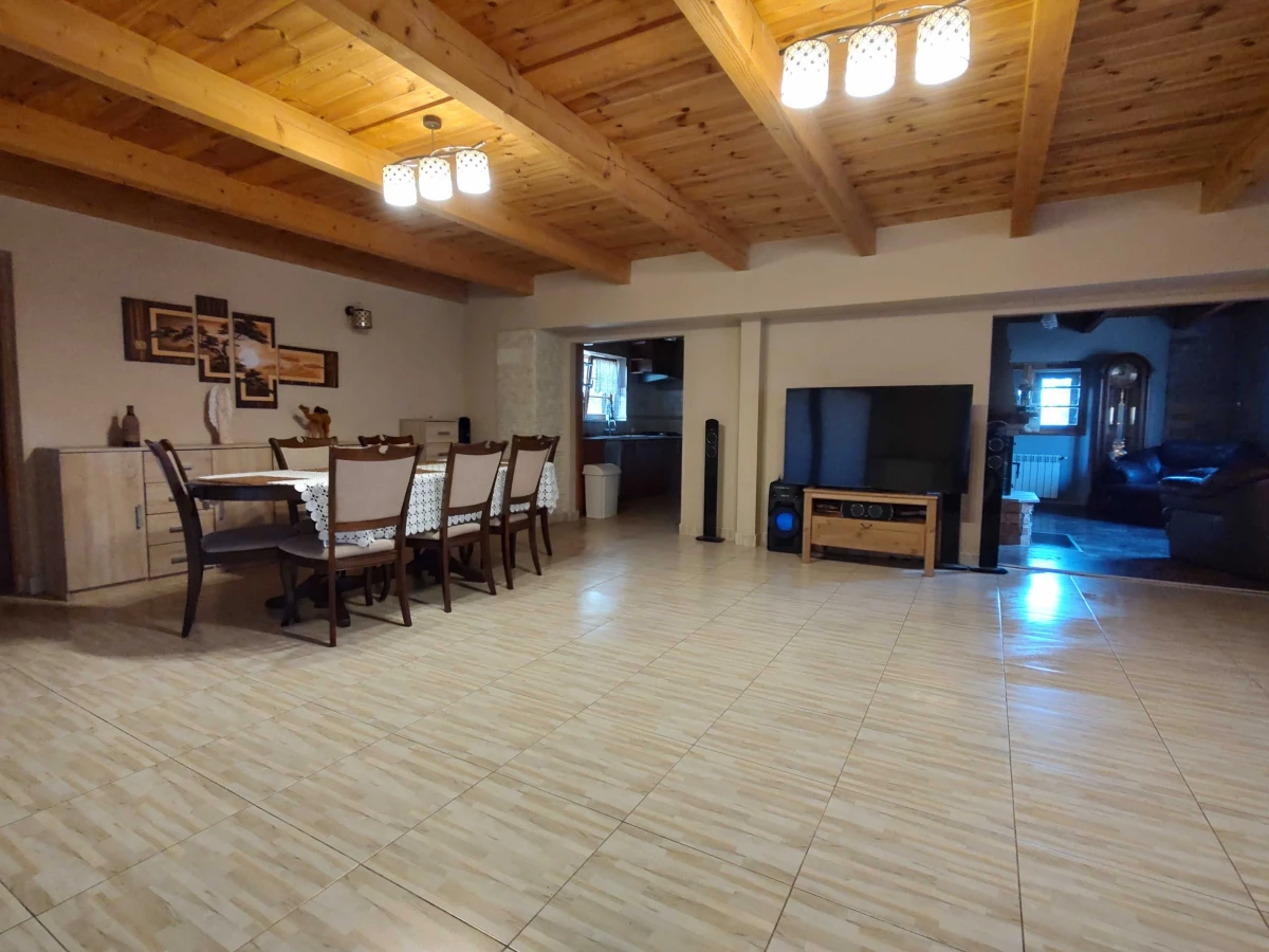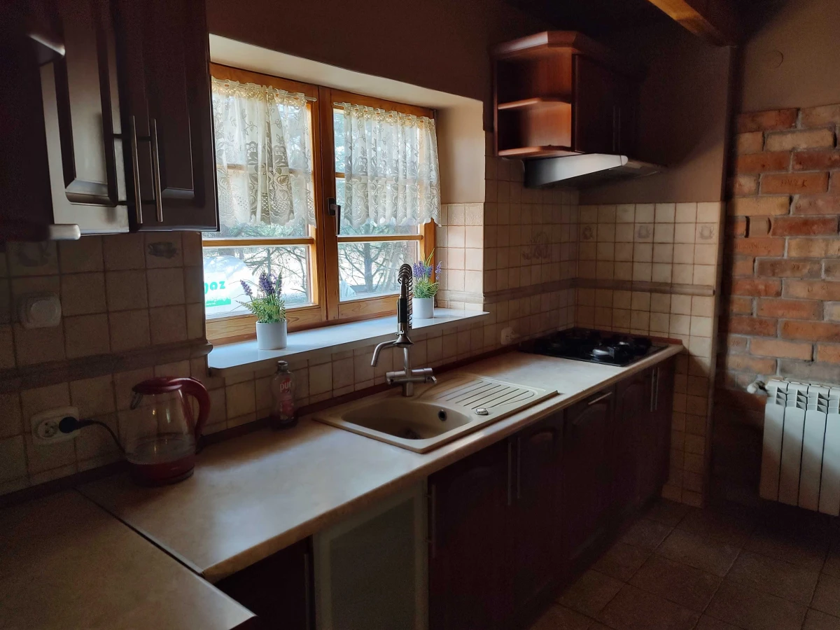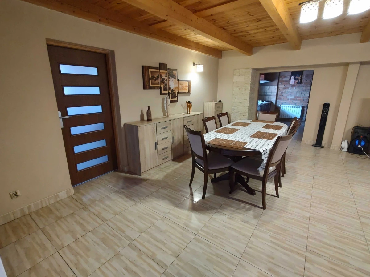 Powierzchnia domu wynosi 150 m², z 4 pokojami (3 sypialniami); na poddaszu istnieje możliwość podziału przestrzeni na dodatkowe pokoje. Działka ma 1800 m², kształt prostokątny, z dojazdem drogą asfaltową i ogrodzeniem.