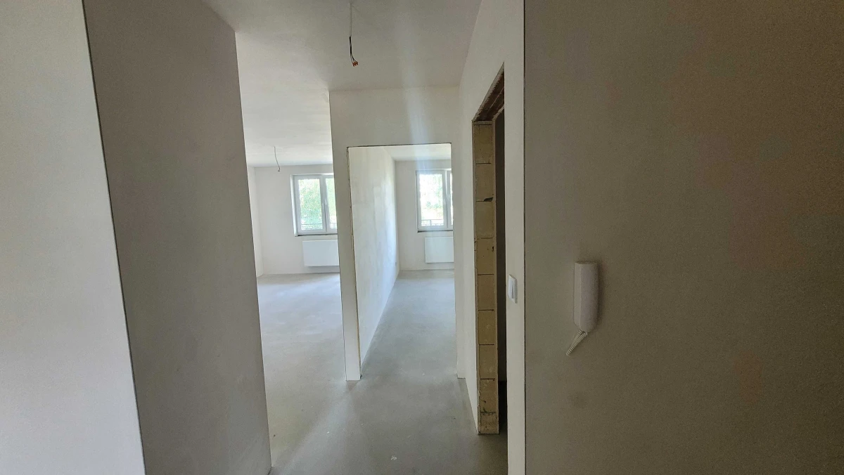 Mieszkanie składa się z trzech pokoi, łazienki, oddzielnej toalety oraz korytarza. Jest ono zaprojektowane w taki sposób, aby zapewnić wygodę i funkcjonalność dla przyszłych mieszkańców. Dodatkowym atutem są dwa balkony, z których jeden wychodzi na południe, a drugi na północ, co pozwala cieszyć się słońcem przez większość dnia.
