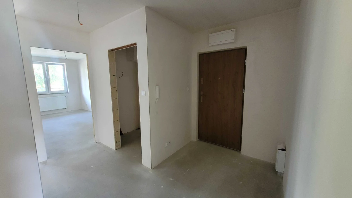 Mieszkanie zostało wykończone w stanie deweloperskim, co daje możliwość przyszłym właścicielom dostosowania go do swoich indywidualnych potrzeb i preferencji. W mieszkaniu znajdują się wykonane wylewki i tynki, zamontowane grzejniki, gniazdka oraz włączniki światła. Stolarka okienna wykonana jest z PCV, a drzwi wejściowe są stalowe i antywłamaniowe, co zapewnia dodatkowe poczucie bezpieczeństwa.