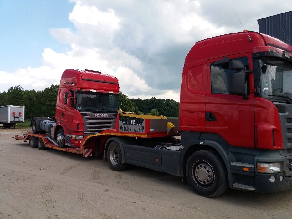 Wynajem naczep do transportu wysokich samochodów ciężarowych i maszyn budowlanych , naczepy wyposażone są w najazdy i wciągarki.