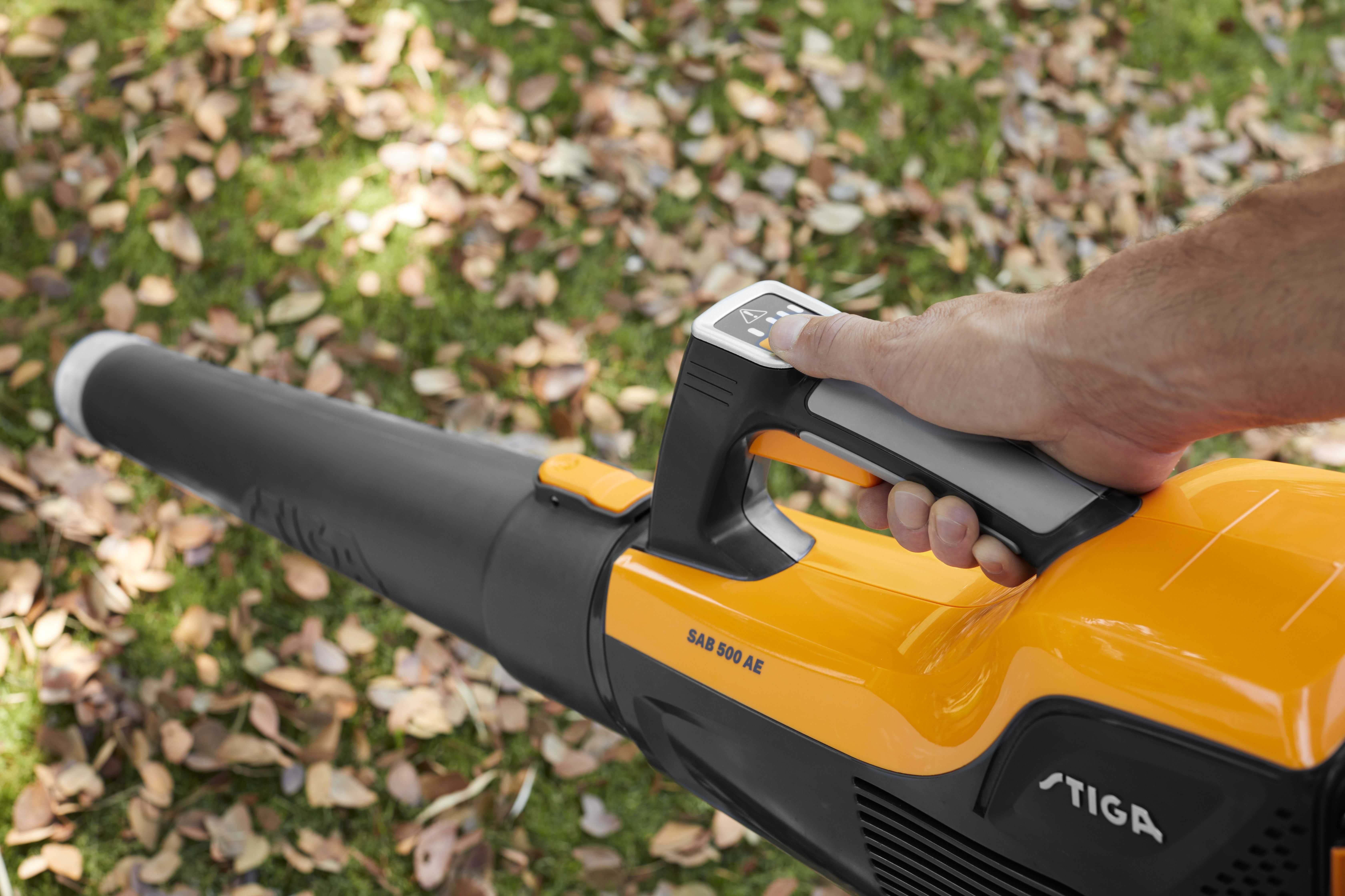 STIGA SAB 500 AE to dmuchawa do liści, w której wykorzystano innowacyjną technologię 48 V, która zapewnia optymalną wydajność. Maksymalne natężenie przepływu powietrza to 11,4 m³/min. Zasilanie akumulatorowe oznacza cichą pracę bez emisji spalin, a także ograniczenie czynności obsługowych i drgań. Umieszczenie wentylatora na osi maszyny sprawia, że SAB 500 AE działa jak silnik odrzutowy, wydmuchując powietrze bezpośrednio przez wentylator. Intuicyjna klawiatura ułatwia obsługę. Akumulator SBT 520 AE 2 Ah + ładowarka SCG 515 AE w zestawie.