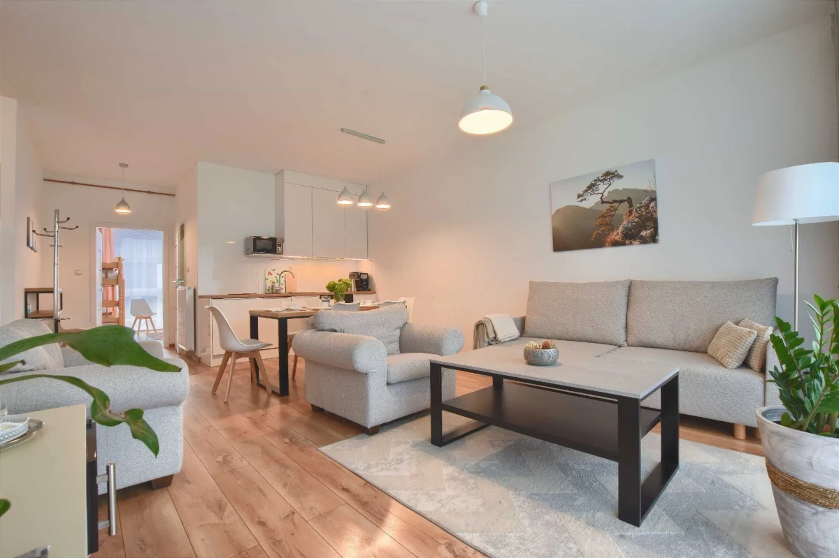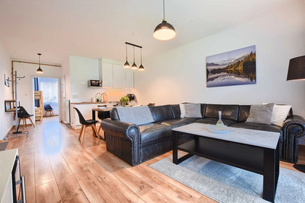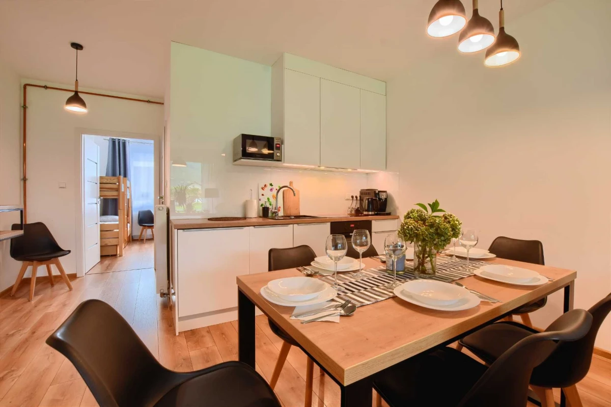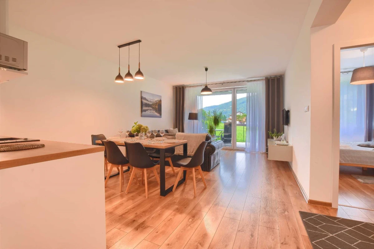 Posiadam do wynajęcia dwa nowo wybudowane apartamenty o powierzchni 74m2 oddane do użytku w styczniu 2020, w samym sercu malowniczej górskiej miejscowości Szczyrk. Każdy z lokali przeznaczony jest maksymalnie dla 8 osób. W apartamentach znajdują się dwie duże sypialnie z łóżkiem małżeńskim, dodatkowo w jednej sypialni umieszczono łóżko piętrowe, które jest uwielbiane przez dzieci. Do dyspozycji gości jest kompleksowo wyposażony aneks kuchenny oraz salon z rozkładaną sofą.