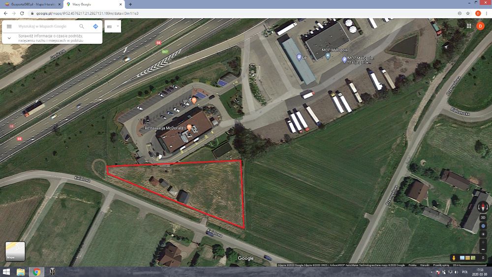 Działka pod market MOP Radzymin Mc Donalds' trasa S-8 Warszawa- Wyszkó