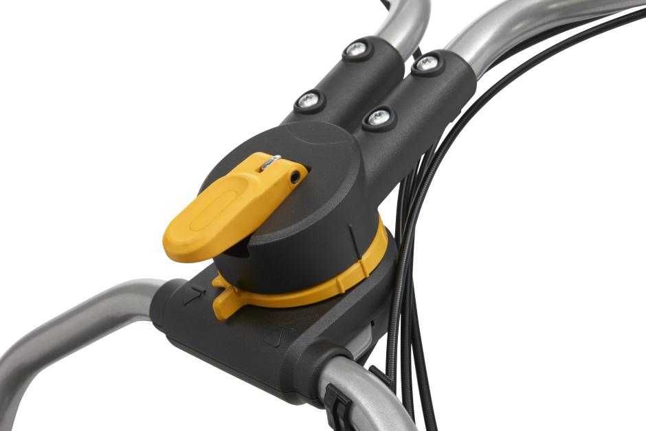 Kierownica Fulcrum zaprojektowana specjalnie dla kosiarek STIGA całkowicie rewolucjonizuje proces koszenia trawnika. Dzięki innowacyjnej konstrukcji można go odchylić nawet o 25° od mechanizmu tnącego i w ten sposób kosić pod krzewami i wzdłuż ścian bez obaw o podrapanie, przetarcie odzieży ani pobrudzenie się.