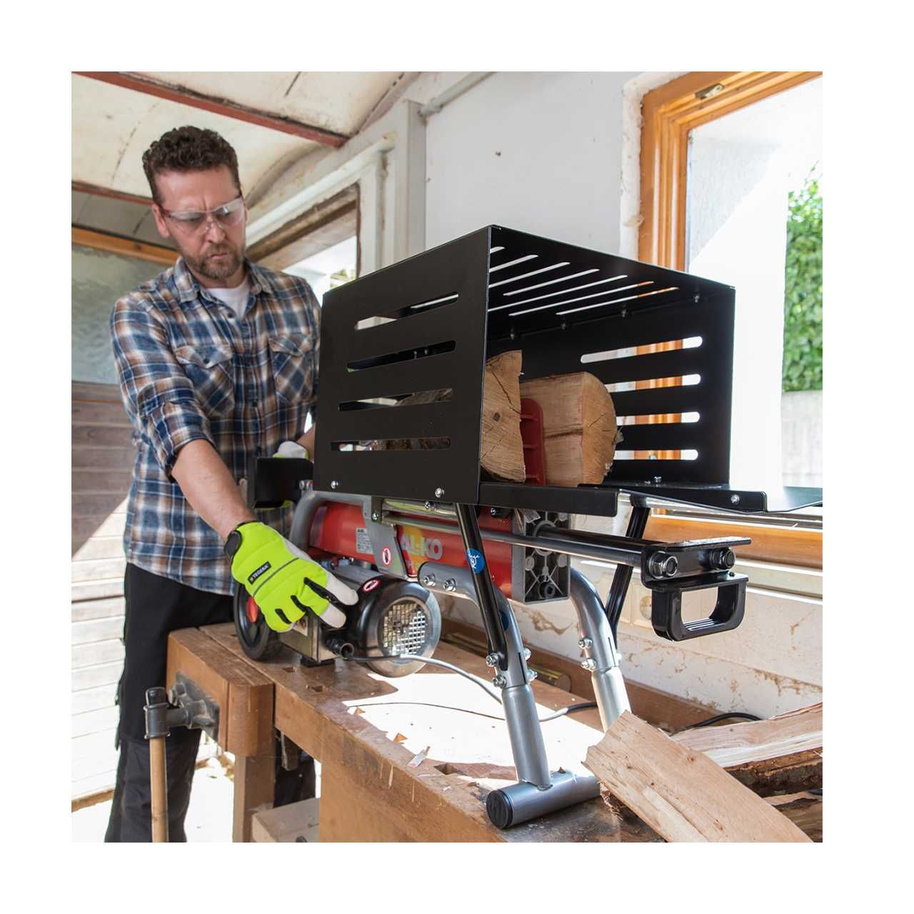 Pomimo bezpiecznej budowy i obsługi oburęcznej (związanego z tym zmniejszenia ryzyka), zalecamy noszenie obuwia ochronnego, okularów ochronnych i rękawic podczas obsługi łuparki. Podczas pracy upewnij się, że łuparka jest ustawiona na stabilnej, równej powierzchni.