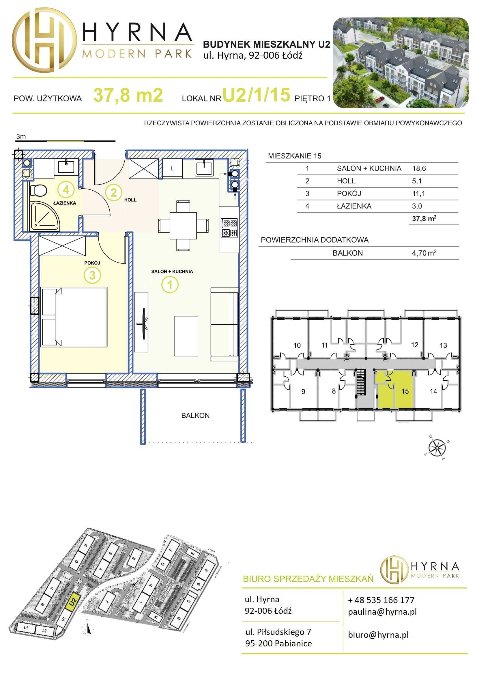 Mieszkanie o łącznej powierzchni 37,80m2 składa się z: