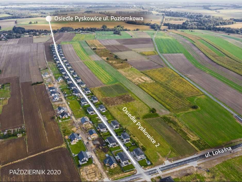 "Osiedla PYSKOWICE II" to kontynuacja osiedla domów położonych przy ulicy sąsiedniej do ul. Poziomkowej.