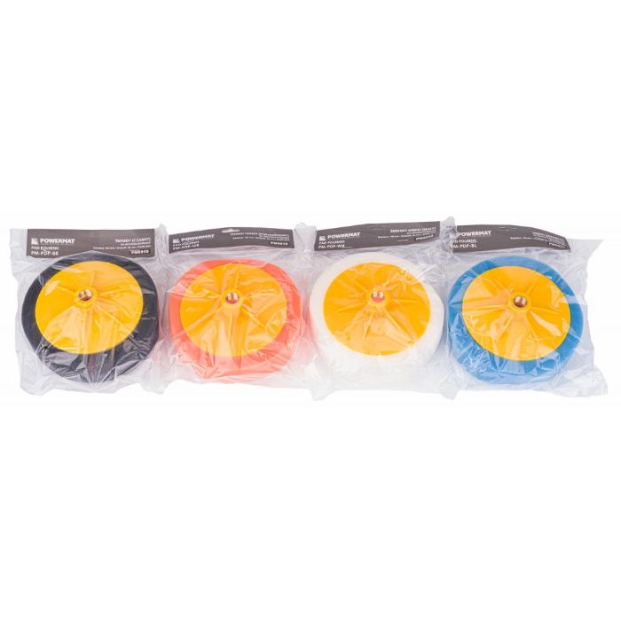 4x pad polerski 150 mm / 45 mm (czarny - twardy; pomarańczowy - średnio twardy; biały - średnio miękki; niebieski - miękki)