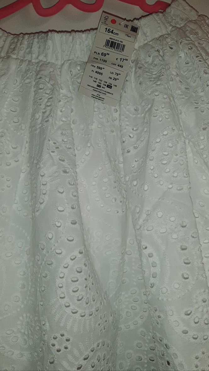 Sprzedam spódniczkę RESERVED rozm 164. Śliczna biała w koronkowy haft . Cena 20 zł . Długość całkowita 43 cm. W pasie gumka. Zapraszam na pozostałe moje aukcje