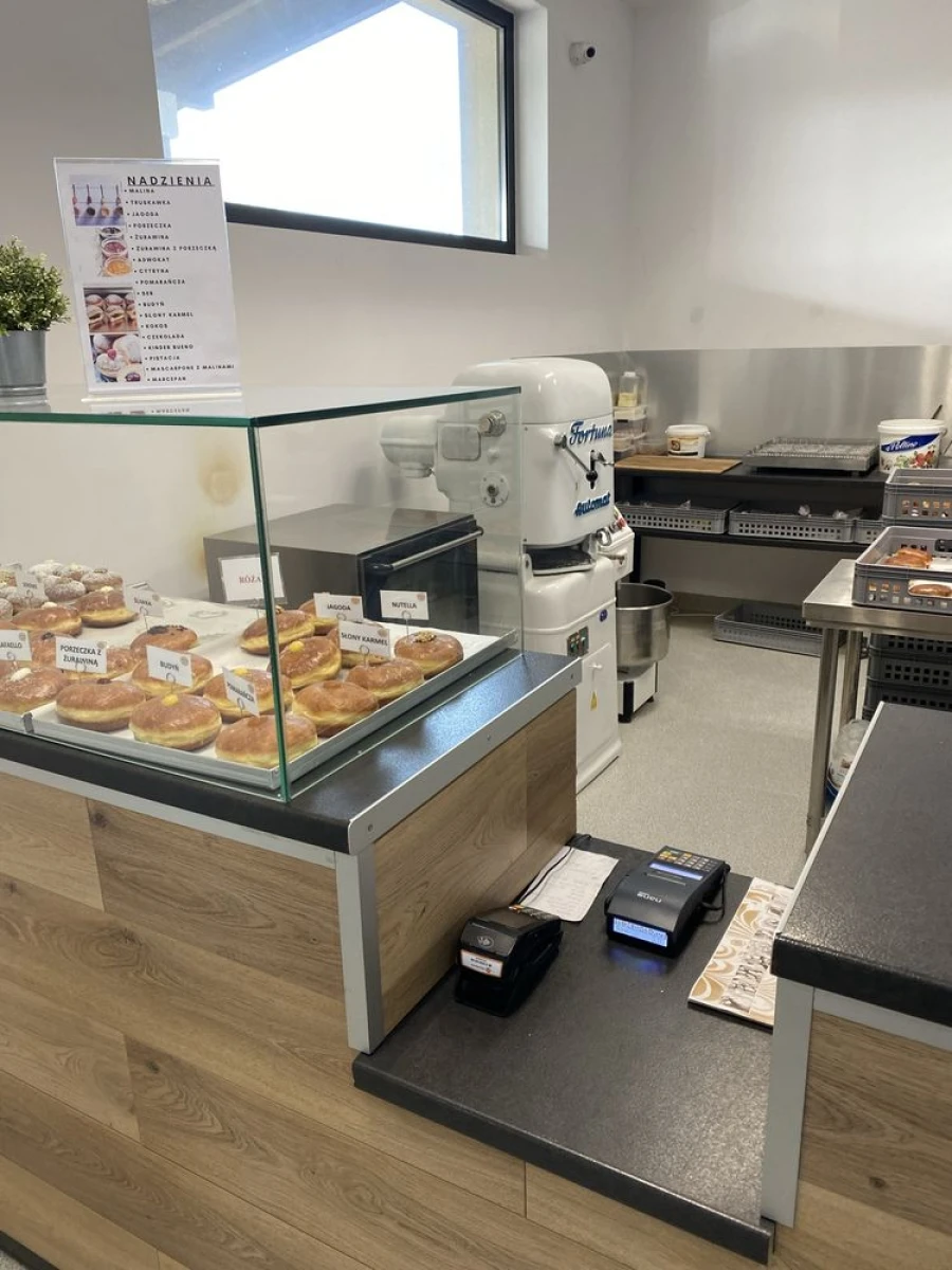 - Dodatkowo: duża oświetlona witryna cukiernicza, duża lodówka.