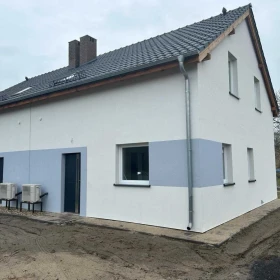 Dom został zbudowany z najwyższej jakości materiałów, z dbałością o każdy detal, aby zapewnić nie tylko komfort, ale także energooszczędność i trwałość przez wiele lat. Jego architektura i układ przestrzenny zostały zaprojektowane tak, aby sprostać potrzebom nowoczesnej rodziny.
