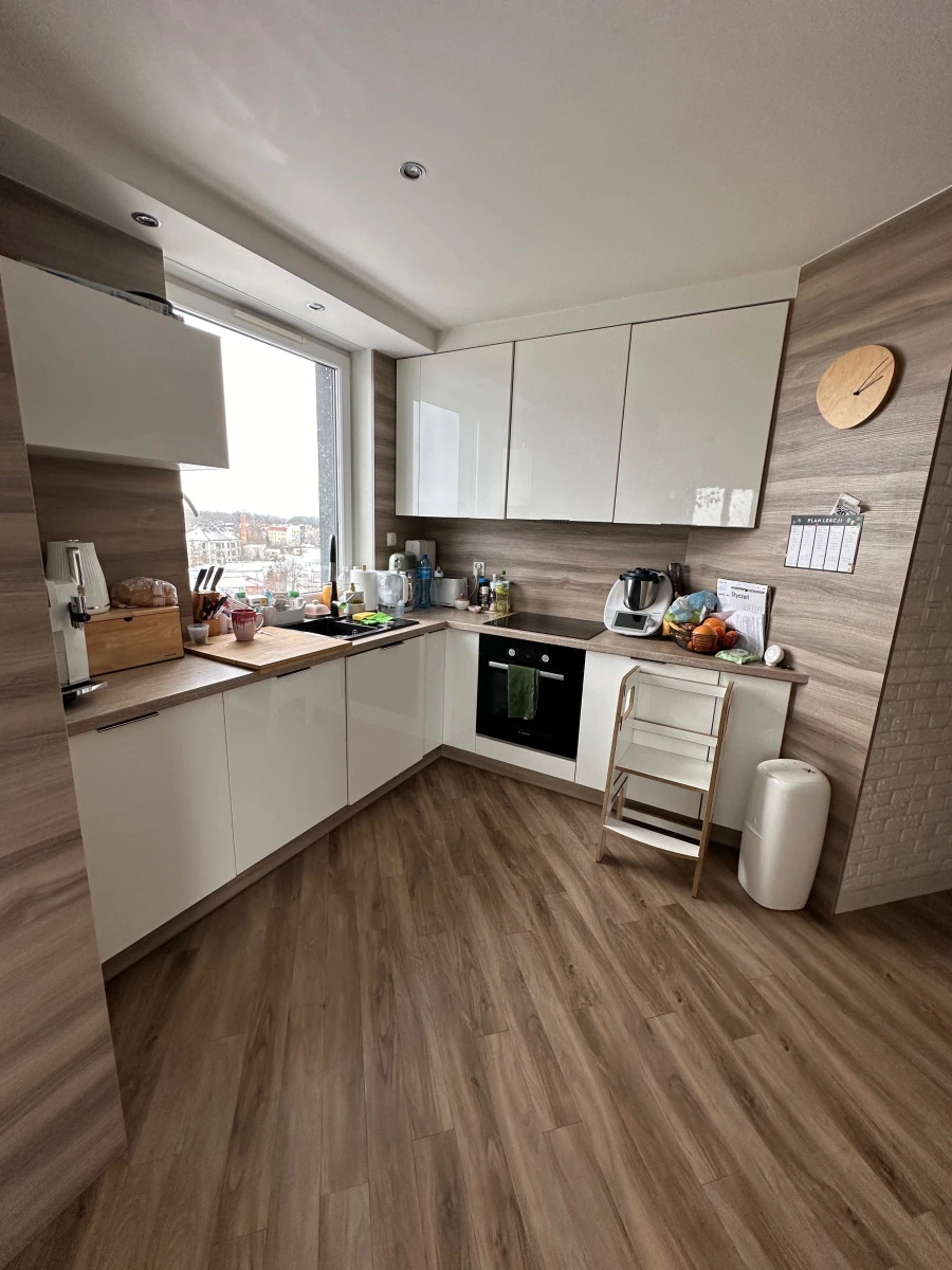 - W pełni wyposażona kuchnia z AGD (piekarnik, płyta indukcyjna, okap).