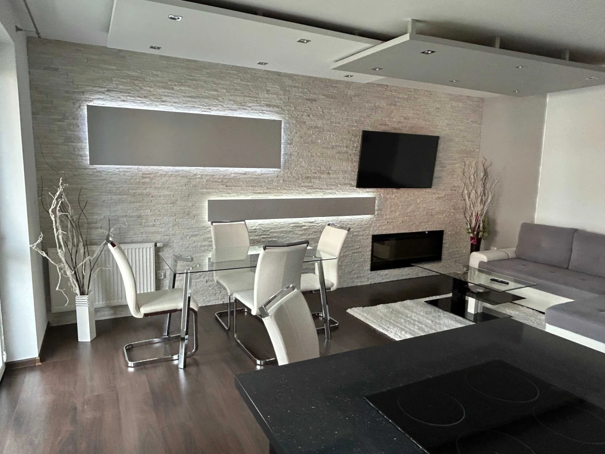Dodatkowym atutem wyposażenia może być – sprzęty AGD , ładny kominek w salonie, telewizor oraz meble tarasowe na balkonie. Wszystko gotowe do zamieszkania bez konieczności dodatkowych inwestycji.