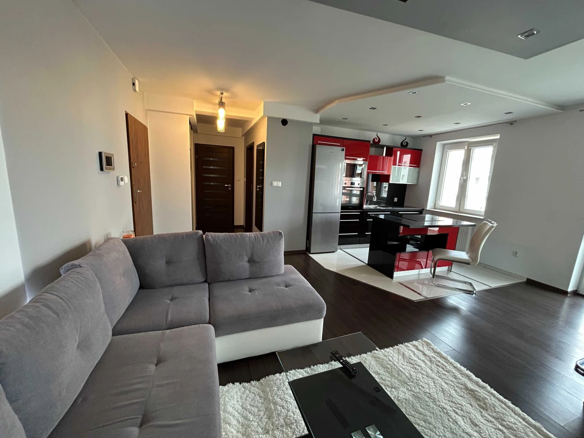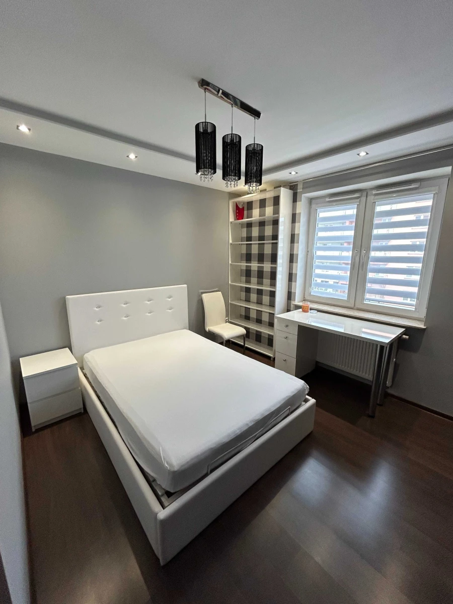 Mieszkanie wyróżnia kk się przestronnym układem pomieszczeń: jasny salon z jadalnią i otwartą kuchnia, która prowadzi na balkon, sypialnia z praktyczną zabudową, a także nnowoczesna łazienka z prysznicem.