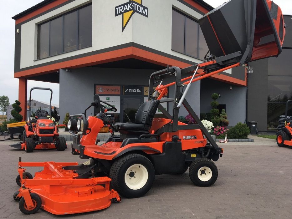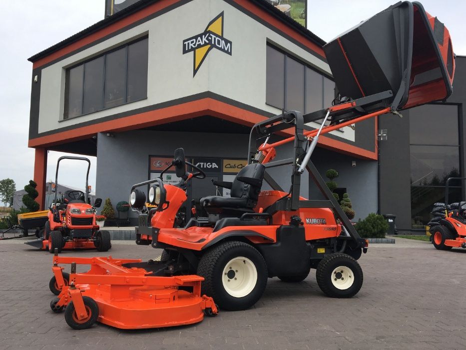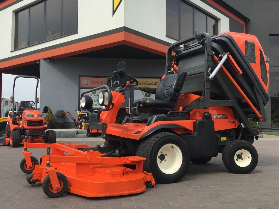 Ogłoszenie dotyczy profesjonalnej kosiarki KUBOTA F3680 z koszem górnego wyładunku oraz agregatem tnącym