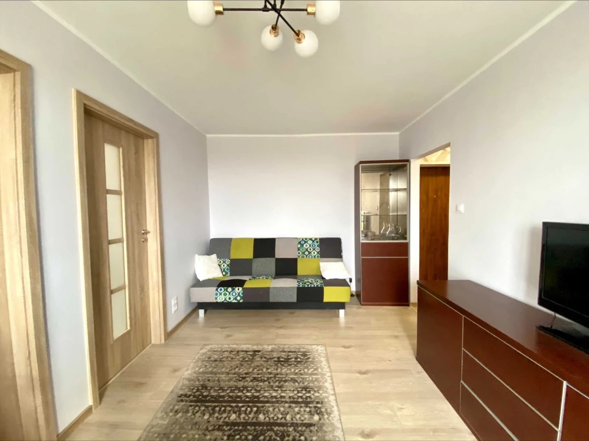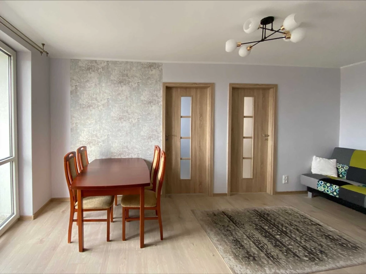 Wejście do mieszkania prowadzi do przestronnego salonu, który posiada otwarte przejście do kuchni. Salon został wyposażony w nowoczesną rozkładaną wersalkę, wygodny stół z krzesłami, praktyczną komodę oraz elegancką witrynę. Kuchnia, niedawno odnowiona, zostanie dodatkowo wyposażona w nowe meble, a obecnie posiada kuchenkę gazową, zmywarkę, lodówkę, zamrażarkę, piekarnik oraz czajnik. Mieszkanie posiada dwie sypialnie: pierwsza wyposażona jest w rozkładane pojedyncze łóżko-fotel, szafę oraz biurko, natomiast druga posiada rozkładaną kanapę, biurko z krzesłem oraz dużą szafę. Łazienka wyposażona jest w prysznic, toaletę oraz pralkę. Przedpokój z dużą szafą oraz lustrem zapewnia dodatkową przestrzeń do przechowywania. Mieszkanie posiada również balkon, idealny do odpoczynku na świeżym powietrzu.