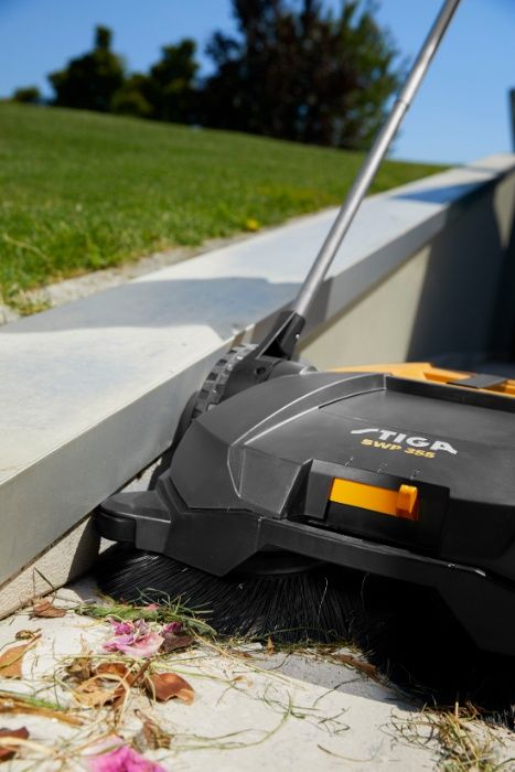 Klasyczna miotła odchodzi w zapomnienie, nowoczesne zamiatarki ręczne STIGA nie tylko ułatwiają pracę, ale i kilkukrotnie skracają czas potrzebny na wysprzątanie nawierzchni pokrytej np. suchymi liśćmi, gałązkami, pyłem czy śmieciami. Jako urządzenia wielozadaniowe, jednocześnie zamiatają i zbierają wszystkie zanieczyszczenia. Nowoczesny system zamiatania z trzema szczotkami (dwóch bocznych oraz walcowej) umożliwia sprawne oczyszczanie nawierzchni, nawet w trudno dostępnych miejscach. Funkcja dostosowania wysokości zamiatania w skali regulacji od 2 do 8 pozwala na adaptację trybu pracy urządzeń do konkretnej powierzchni. Zgromadzone zanieczyszczenia przenoszone są wprost do 20 litrowego kosza.